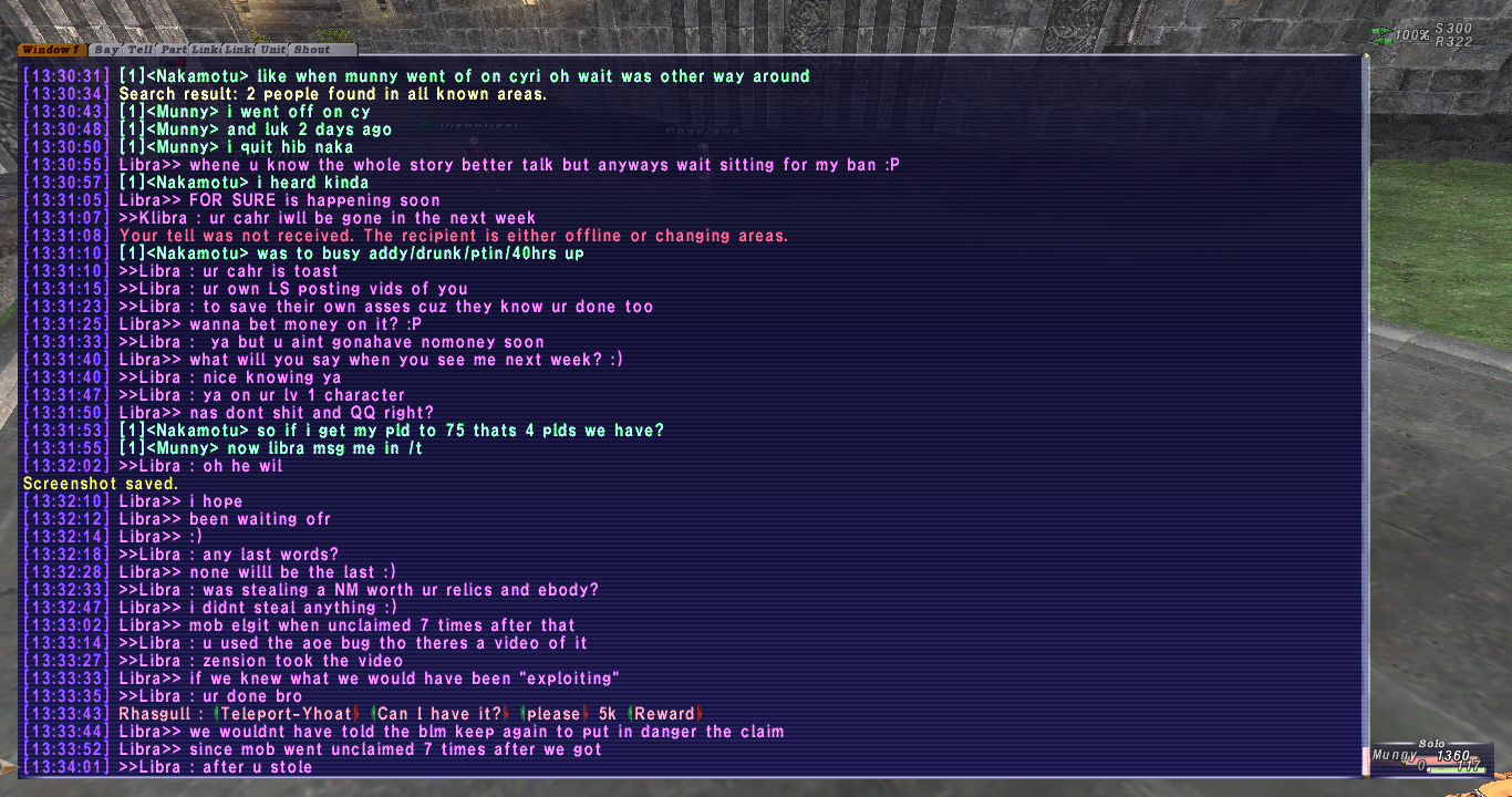 If this exploit is not bannable, even after they admit they did it. Then let the games begin at every NM/HNM! The last group to have claim as NM dies wins!