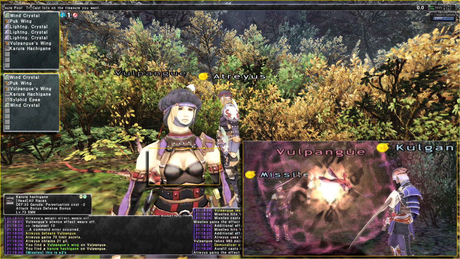 main window is full screen, alt window is 2/3 windowed, when I'm on main it's all i see, when i need cures or support I swap and alts 2/3 takes foreground. It's clunky and there's no environmental awareness for alt when she's not in focus. I get around that with clever macroing, and static pc armor display to /follow without her running off into oblivion on gear swaps. Works great for PL or some lowman content, up to gods & jailers, but I wouldn't try dynamis or limbus, or JoL or HNM as such. Also I been at this for like 5-6 years or somethin like that, so I've hardwired my brain to react with this setup. Was originslly done on a laptop that bit the dust, but even with a decent gaming rig, I can't function any other way xD