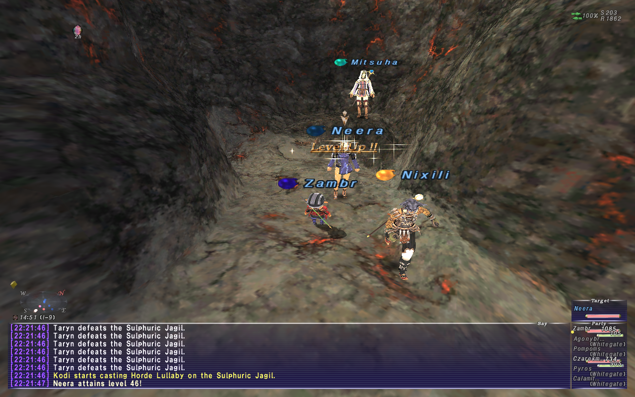As for the Dynamis comment, you're referring to me when you came into Naschat crying about this last night. It was sarcastic, and I never said there were cheaters. They're cheating as much as the folks in your screenshot are, lol. Nasomi already knows about what happens in Dynamis, and it's also allowed. That was the joke. There are ways to gain XP by aga-ing down large amounts of mobs, it can be dangerous at times, requires good gear and teamwork. It's the point of the game. I said when "YOU" see what's happening in Dynamis your mind will be blown... not when Nas sees it. Nas isn't a moron, you appear to definitely be one.