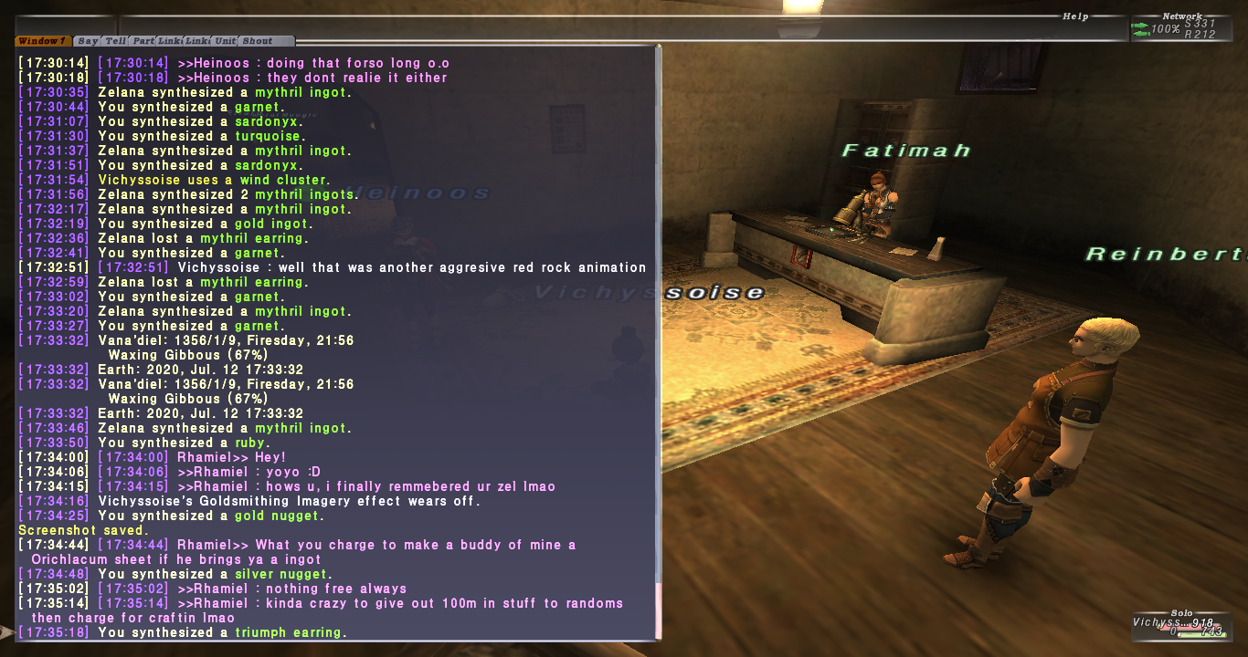 Nas cant even fix 4-5 economy breaking exploits that he's had 3-4 years to fix, and most were quickly fixed on Eden. I refuse to believe he's capable of coding anything that takes into account the rock type when determining synth element in regards to day or any elaborate crafting system. Someone else having coded it, like deadwing, is an option. Ill believe it when someone records thousands of synths doing this and achieves a significantly higher HQ percent than the thousands of synths ive recorded. Ill be testing it myself, but I certainly wont be telling anyone what I find, as im sure most other crafters that find an advantage in the spaghetti code would do.